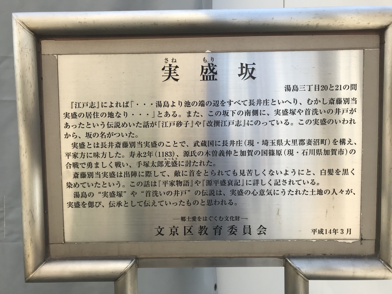鳥つね本店から南に下って行ったら、脇道に実盛坂を発見。急な階段が長く続き、このあたりの地域の高低差を感じることができる。実盛坂の実盛は平安時代の人で、坂の近くには実盛塚や首荒い塚などの伝説が残る場所がある。今度時間がある時はセットで行こうと思う。