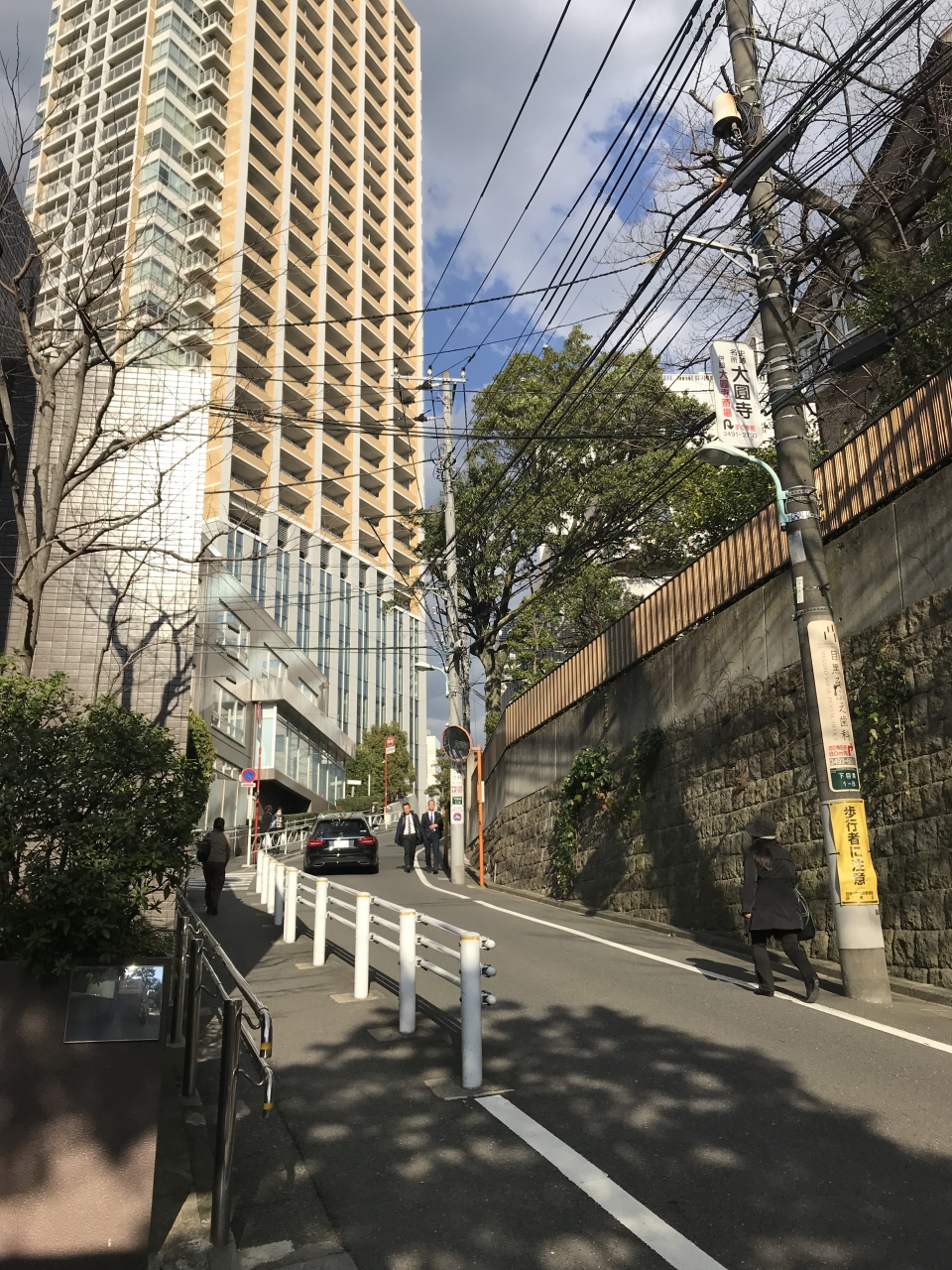 雅叙園から目黒駅に行くのに行人坂をあるった。かなりキツイ坂で、歩くのがしんどいけど、人通りの多い坂。坂の途中には大円寺というお寺があって、寄り道した。坂に沿って石垣があったり、電線が沢山張られ、坂の上には大きなビルがあり、独特な景観を楽しめるのが行人坂です。