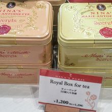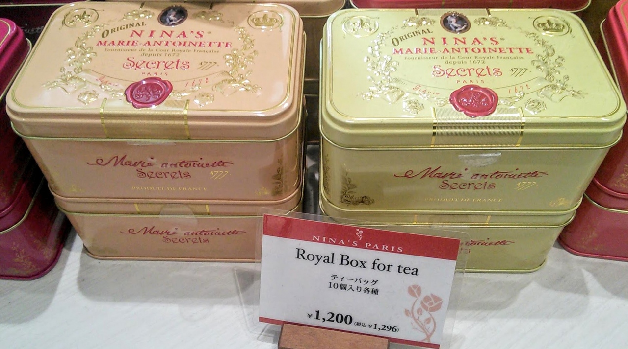 レジ横に、1672年創業、ヴェルサイユ宮殿の王の菜園で栽培された果物や花で香りづけした紅茶ブランド、ニナスのマリー・アントワネットティーが並んでいました。マリー・アントワネットが食べたであろうりんご、好きだった薔薇の花を使って香りづけされている正真正銘、本物のマリー・アントワネットティーは、ピンク色の缶に入った商品で、特におすすめです。