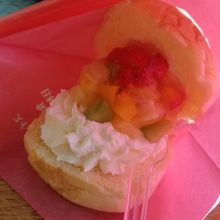 クリームパンで有名な八天堂のカフェ。通常のクリームパンのほかに柔らかなパンにクリームとフルーツを挟んだスイーツバーガーがオススメ!ドリンクセットもあり、当日の観戦チケットがあれば100円引きにもなってお得です。