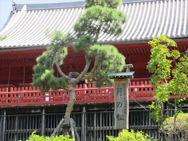 浮世絵師である歌川広重の名所江戸百景の中に,上野山内月の松というタイトルで描かれている由緒ある松です.松の枝が曲がって輪を作り,その向こうに不忍池と江戸の街が見えることから,当時から有名観光物として見物人が耐えなかったようです.現在の月の松は江戸時代のものを復元したもので,清水観音堂のすぐ脇に植えられています.