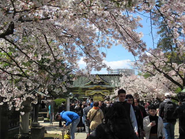 上野恩賜公園内にある上野東照宮へ参拝に行ってきました。ここは徳川家康公(東照大権現)をはじめ、徳川吉宗、徳川慶喜を祀る神社で1627年に創建されました。参道を進むと右手に旧寛永寺五重塔が見えてきました。日光東照宮のような華やかさはありませんが、立派な唐門は国の重要文化財に指定されていて、名工左甚五郎作の昇り龍・降り龍の彫刻が施され綺麗でした。また金色殿は三代将軍・徳川家光が建て替え、日光東照宮までお参りに行くことができない江戸の人々のために建立したと言われています。関東大震災にも倒れるひとなく、第二次大戦時に社殿の裏に爆弾が投下されましたが社殿の倒壊は免れました。参道には全国各地の大名から奉納された灯籠がたくさん並んでいました。