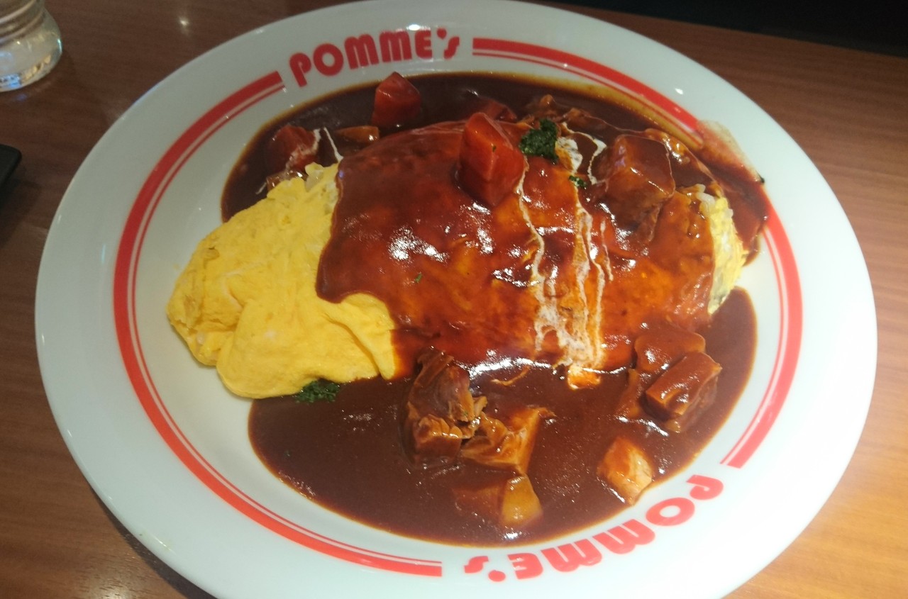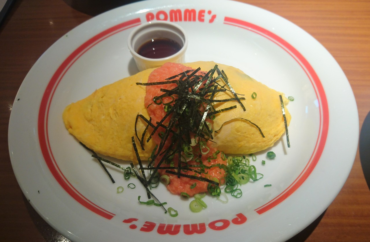 アクアシティは平日の夜は海外の方が多い。初めて入ったポムの樹。オムライスのメニュー数が多くて迷った。サイズはSサイズが標準の量。メニューによってはバターライスとケチャップライスが選べる。レディースセットはサラダとドリンク付。