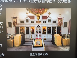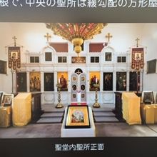 聖堂内には入れませんでした。 看板に聖堂内の写真がありました。 正教会ならではの祭壇ですね。