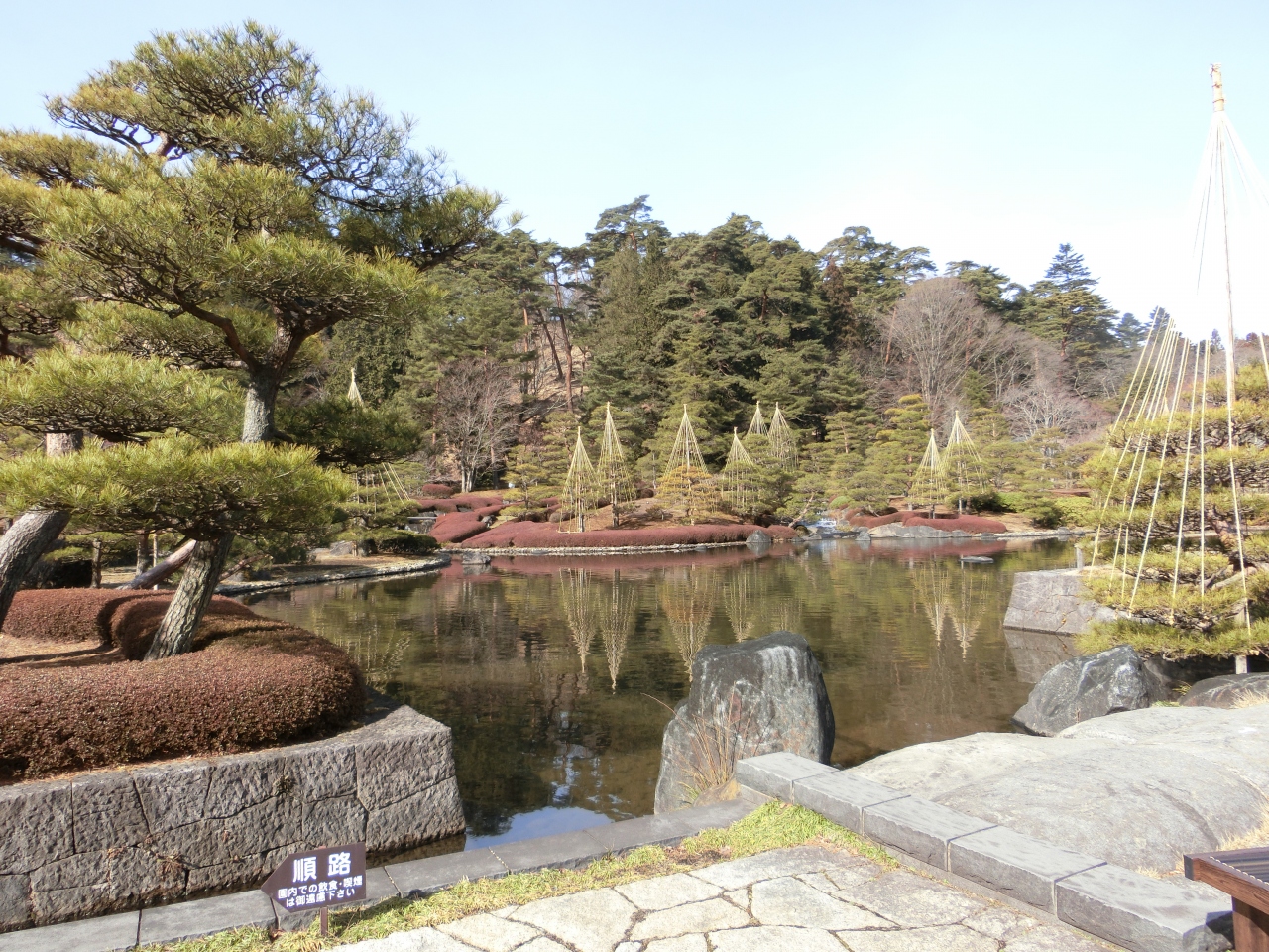 至る所に雪吊がありますが、雪はありません。