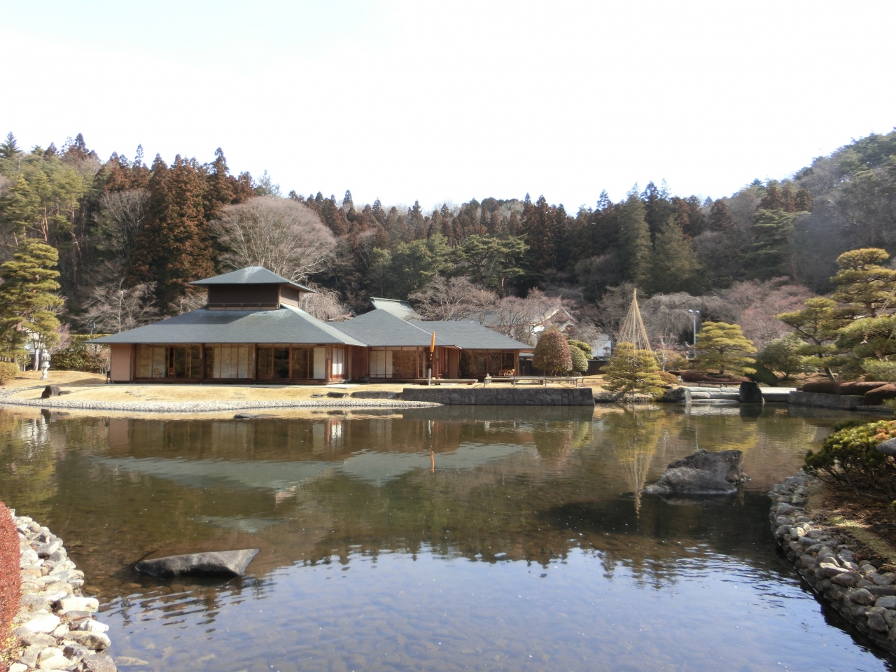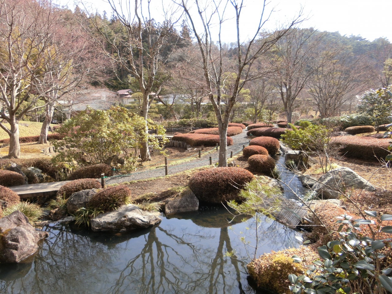 池や川の周りに綺麗に手入れされた木々が並んでおり、歩いていて気持ちが穏やかになります。