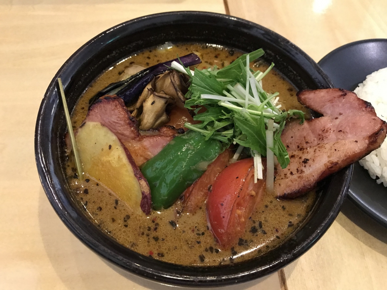 開発が進む比羅夫にあるリゾート感のあるスープカレー専門店です。夜は居酒屋としても使えるようです。ココナツミルクスープの厚切りベーコンのスープカレーを注文しました。辛さは4ですが、マイルドなスープの中にピリっとした辛さがありました。ベーコンも食べ応えがありました。これで1600円となかなかの料金ですが、ニセコ価格なのかもしれません。