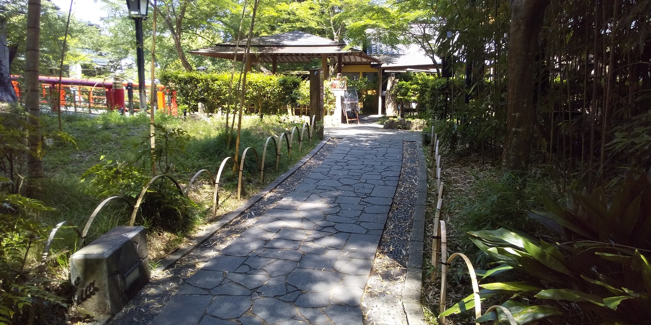 およそ300メートル続く散策路は「竹林の小径」と呼ばれ、爽やかな風が吹く木漏れ日の散歩道です。
