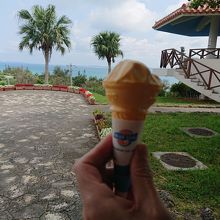 はじめて沖縄の高速道路でサービスエリアに入ってみました。こちらの伊芸サービスエリア下り線のレストランは全席オーシャンビューとの事だったのですがブルーシールのソフトクリームが食べたかったのでソフトを買って建物の裏手に出て見ると金武湾を見渡す事の出来る場所がありました。