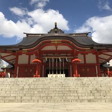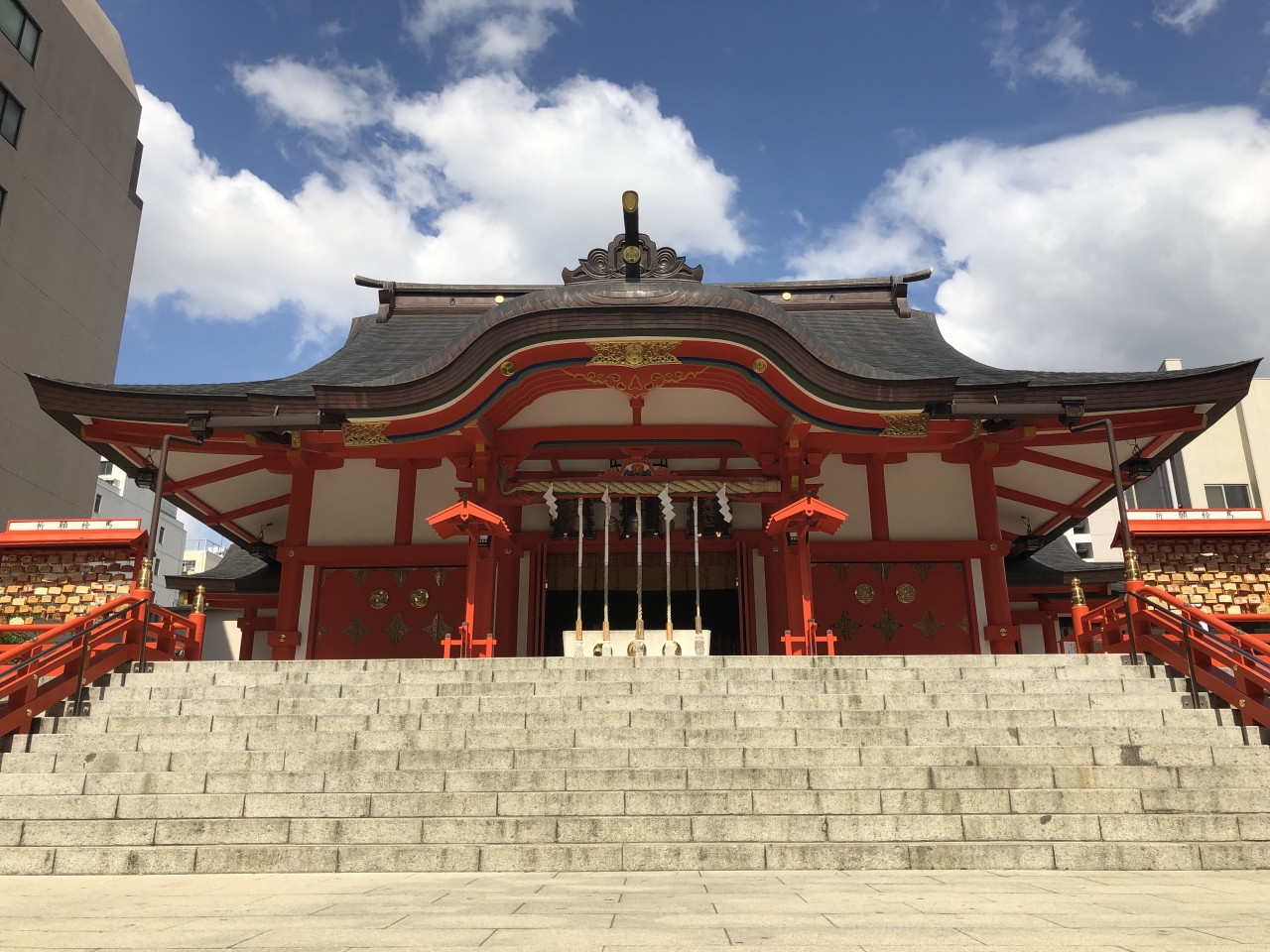 ゴールデン街側から見るとビルの2階にあるように見え、大都会のビルの中に大きい神社があり、驚きました。何度か火災にあっているそうですが、現在は鉄筋コンクリート造りの立派な社殿が建っています。