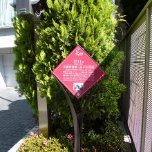学校や住宅が並ぶエリアで、マンションの一画に案内板が設置されています。明治44年から4年間、この場所に住んでいたという事です。今は当時を偲ばせるものがないのが残念です。