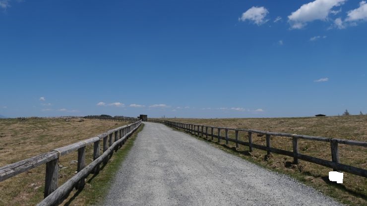 牧場の作業道のような散策路であまり登山要素はないが広大な風景が広がり、遠く雪をかぶったアルプスの山々を見渡せるなど絶景の連続だった。