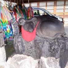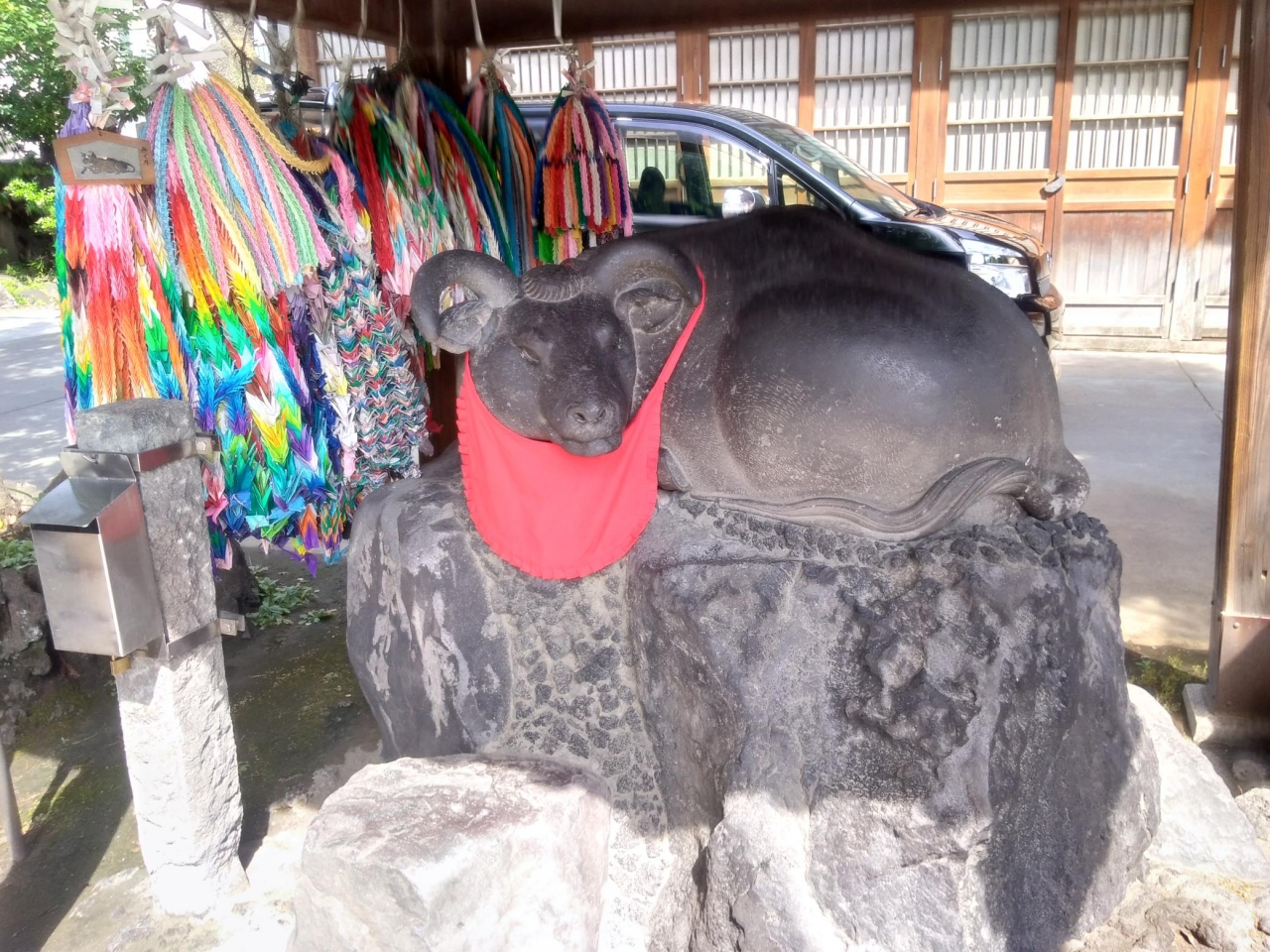 浅草寺から言問橋を渡り、隅田公園に入ると牛嶋神社がありました。こちらには撫牛像なるものがあって、自分の体の悪い部分をなで、牛の同じ部分をなでると治ると言われているそうです。試しに痛みの良く出る左足と右目をなでてみました。