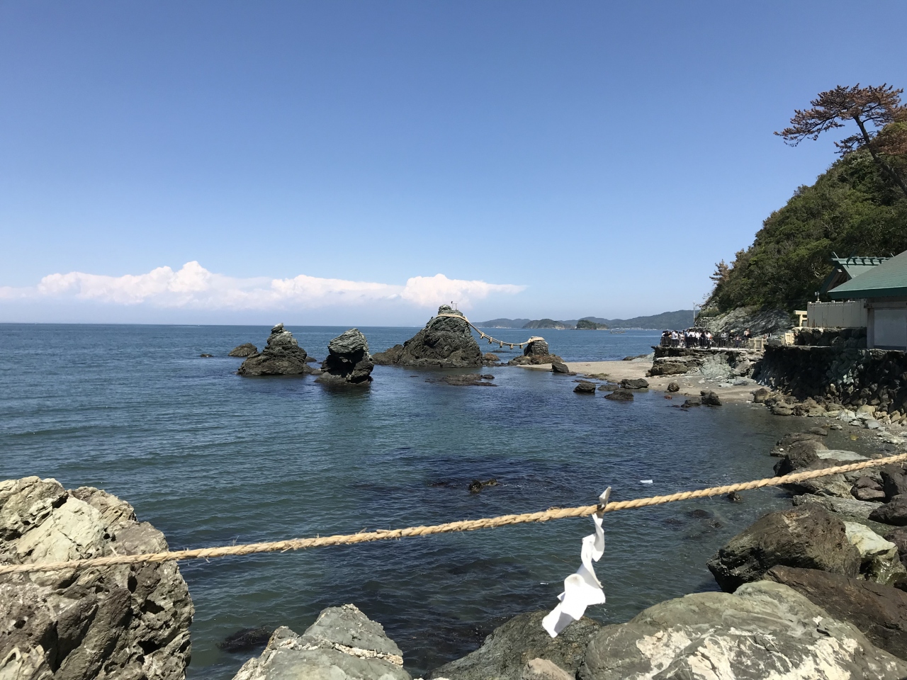 長い列ができていました。御朱印を頂くための列です。また、お参りするのも長蛇の列。GWなので、人人人です。一旦、お参りするのを後にして、夫婦岩のところへ。ここも写真を撮る人たちで、混雑です。ここも通り過ぎて、龍宮社をお参りしてから、戻りました。