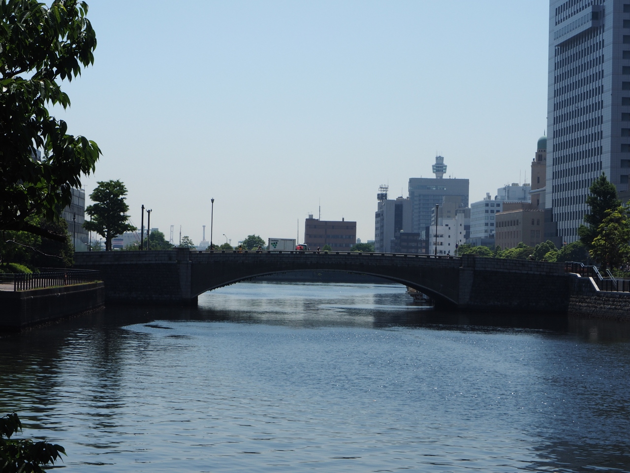 現在は2代目の昭和15年に架設されたコンクリート製の橋になっていますが、両側にある石積み護岸は架け替えの際に手を加えなかったようで、明治に架設した初代万国橋の当時の面影を今に残しているそうです。