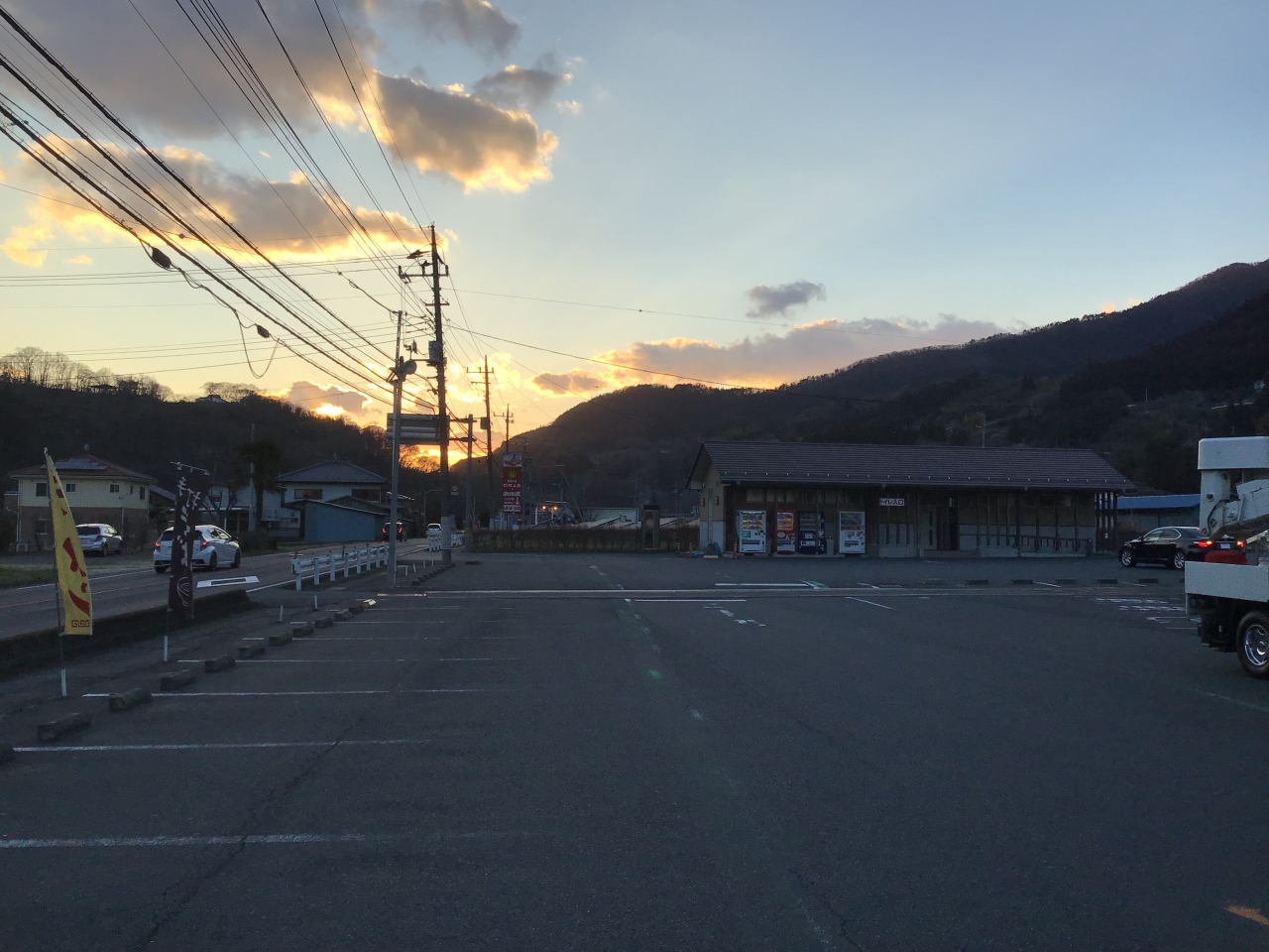 平日の夕方は 店仕舞いも始めているようで、草津、長野原町方面の山々の夕暮れが