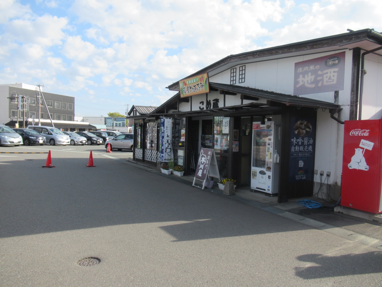 山居倉庫の駐車場に併設されている農産物直売所です。庄内地方のお米や日本酒だけでなく、採れたての野菜、味噌などの地元の調味料、手作りのお菓子など、地元で生産されている食品が並んでいました。山居倉庫内にある観光物産館は綺麗に包装されたお土産が並んでますが、こちらは自宅用のお土産として良いと思います。