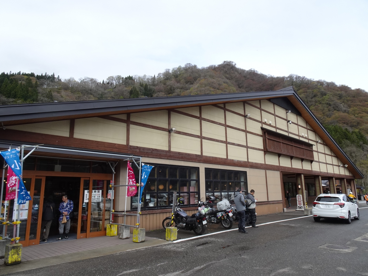 新潟との県境に近く、周囲には主だった観光スポットもないため閑散としているのではと勝手に思っていましたが、この辺りでは貴重な休憩拠点でもあるようで多くの車やバイクが出入りし賑わっていました。
