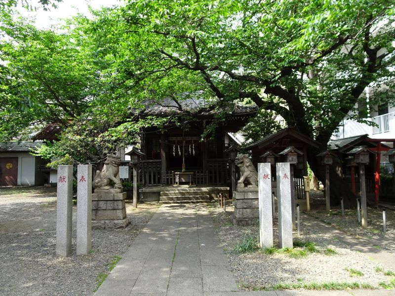 JR蒲田駅から徒歩15分ぐらいかな、石造りの鳥居が見えてきました。境内には木々が茂り、境内も綺麗に整備されています。赤い鳥居がいくつか連なった祠もありました。