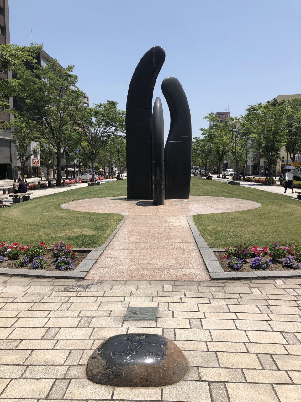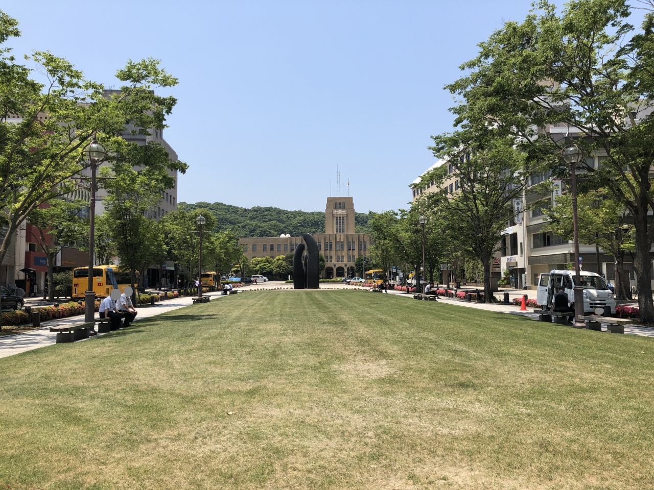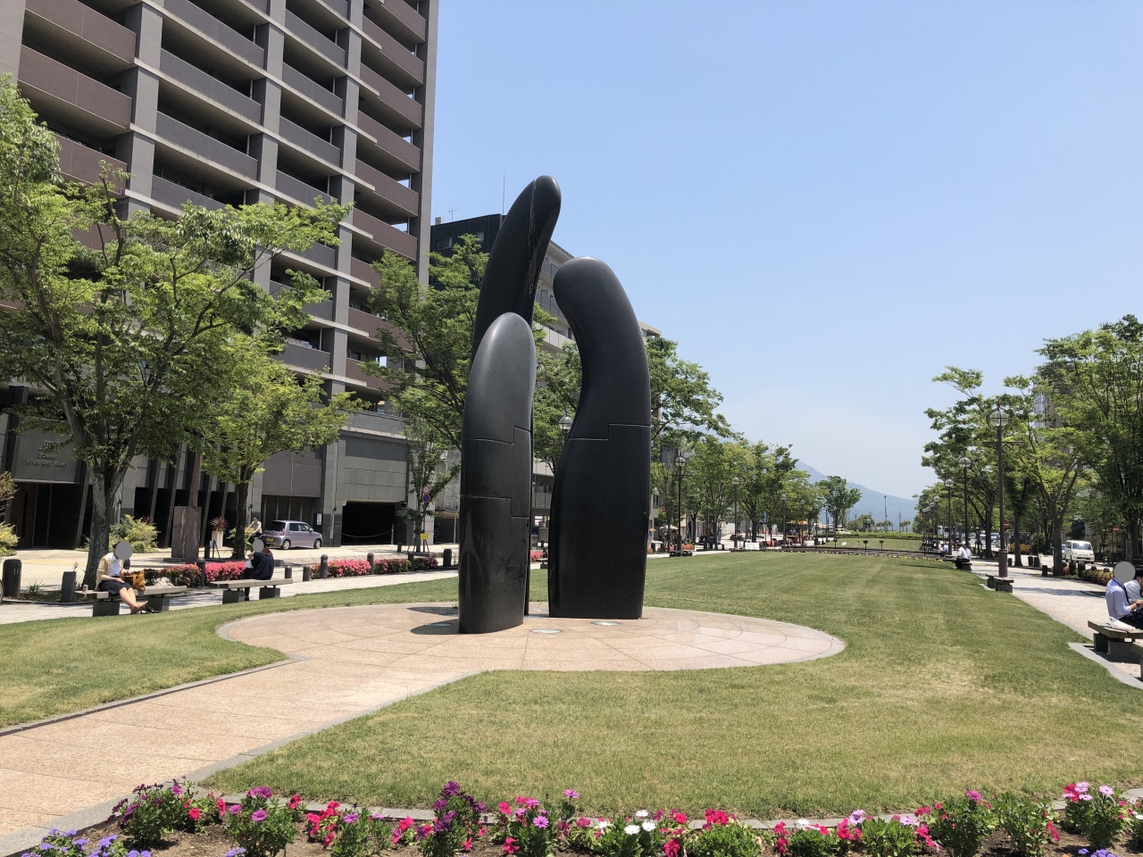 市役所に面していて、市役所側から見ると天気のいい日には桜島が少し見えます。きれいに整備されていますが、日影がやや少なめで、暑い日の休憩にはあまり使えない気がしました。クリスマスシーズンにはライトアップがきれいです。
