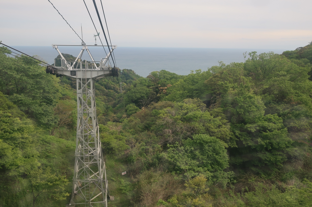 日本平山頂と久能山東照宮を約5分で結びロープウェイです。久能山東照宮に行くには久能山下から表参道の1159段ある石段を徒歩で上って行くのが正式ですが、このロープウェイを使うと体の不自由な人でもあっという間に久能山東照宮に行くことができとても便利。車窓からは相模の海を眺めることができ、GWには眼下に藤の花が綺麗に見えました。