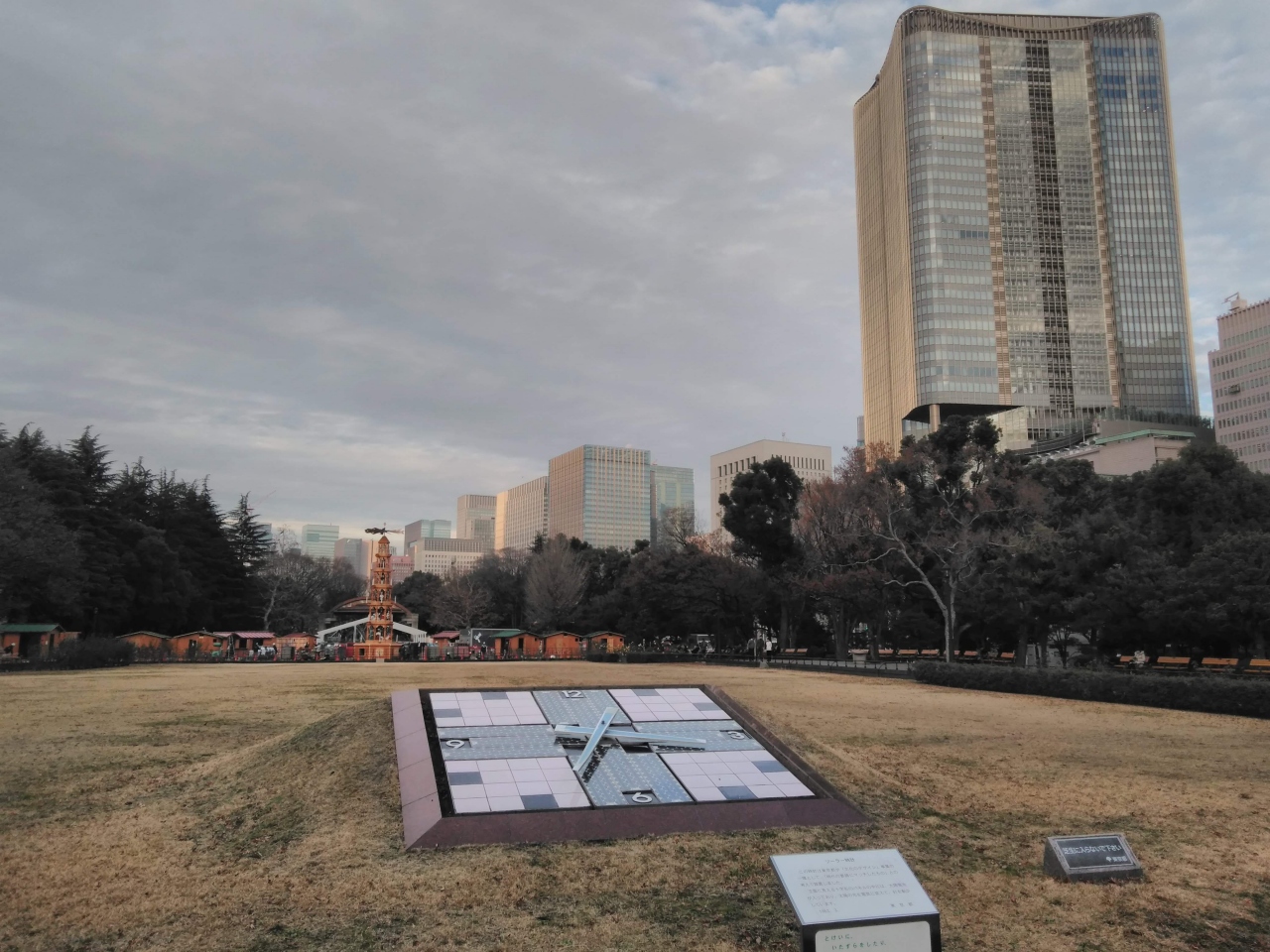 日比谷公園は、都心の大型公園で、見どころも多く、見逃せない観光アトラクションです。にれの木広場から北方を眺めるとソーラー時計のある第二花壇の景色、奥の日比谷ミッドタウン、丸の内のビル群がたいへんきれいです。