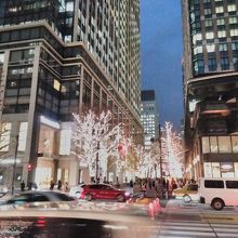 丸の内仲通りは、洒落た商店が並んでいる、歩道が広々した通りです。一番の見物は、冬に行われるイルミネーションで、暗くなった夕方から行われます。このイルミネーションは、冬の東京観光で、絶対見逃せない観光アトラクションです。