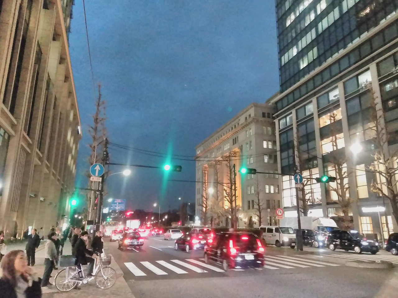 鍛冶橋通りは、丸の内から八丁堀を通って永代橋のちょっと前で永代通りに交わる長い主要道路です。日比谷通りと交差する角地には、たいへん美しい重厚な石造りの明治生命館がドンと建っていて周辺は観光アトラクションが多いです。