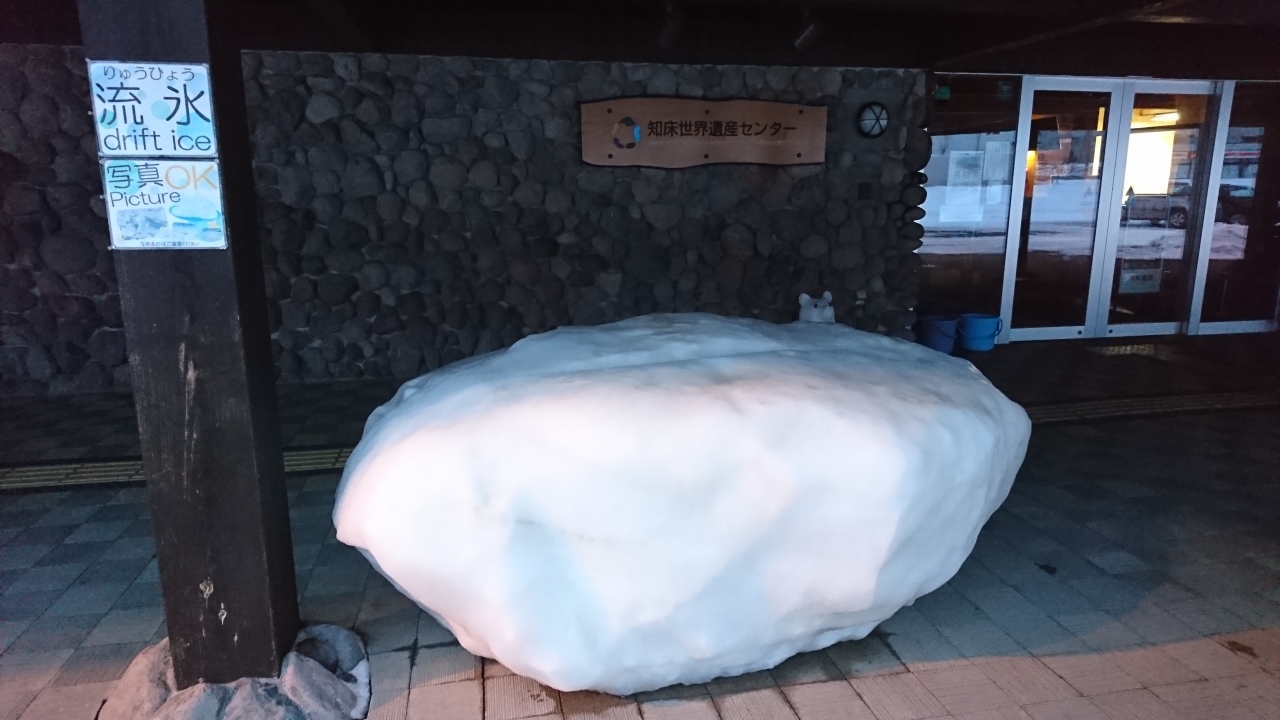 ツアーの移動が遅れ、ウトロのホテルから慣れない雪道を歩いてやっとたどり着いたら、閉館していました。
