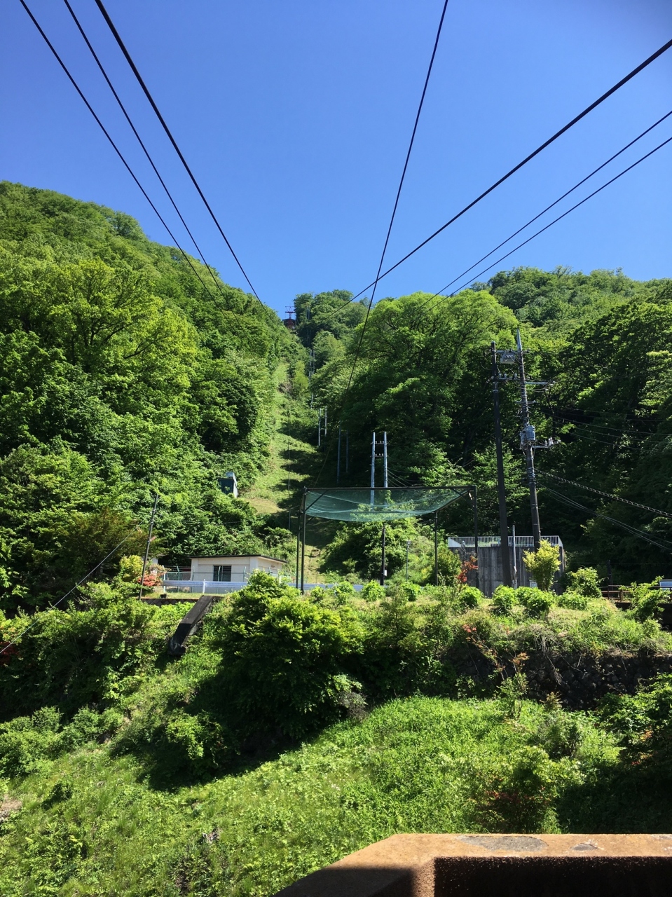 石段街の途中の道を横に進んでいくと、ロープウェイ乗り場があります。