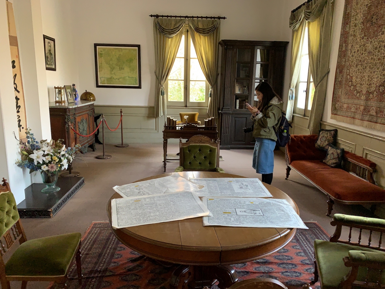 前回来た時は、外側から中をのぞいただけだったけど、今回はお邪魔してじっくり見学。内装、装飾、家財など、どれも豪華な物が残っています。リビングの食卓風景や、書斎の雰囲気など、どこもクラシックで素敵な空間ばかり。西郷從道という人はセンスがよかったんですね。