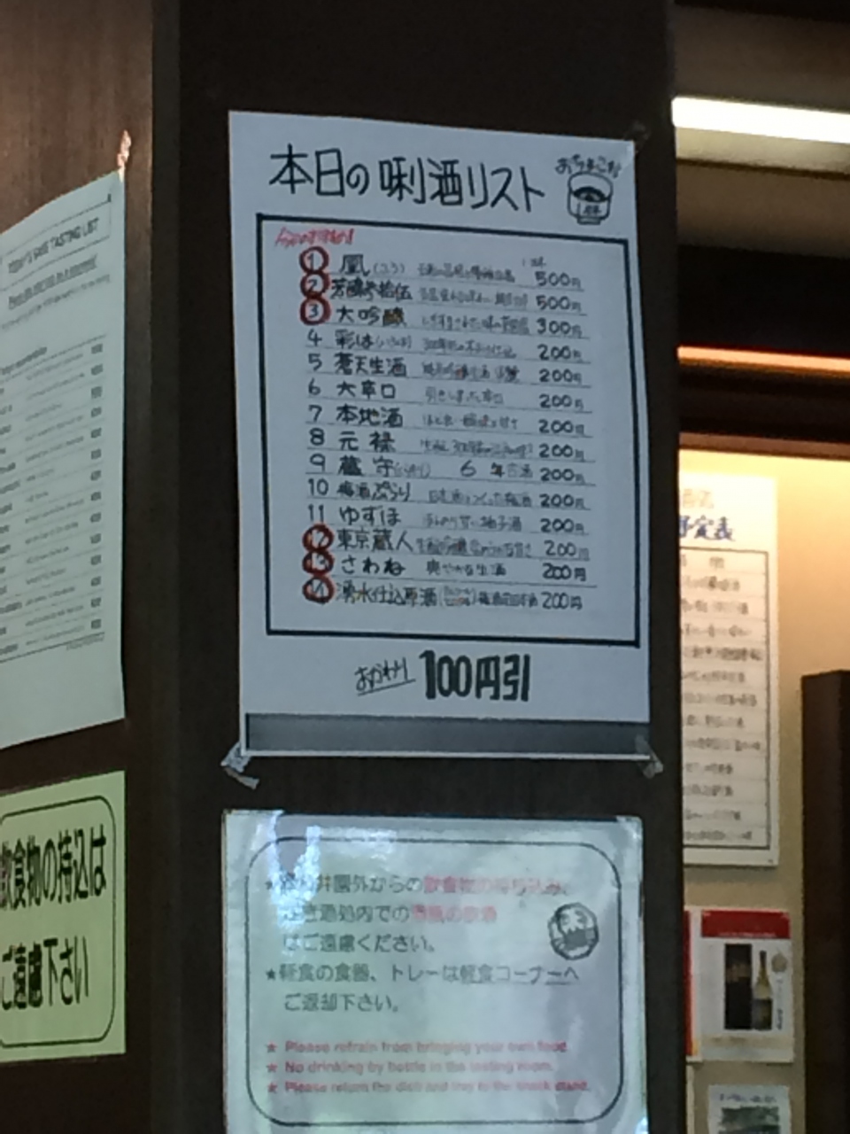 酒造見学のほか、きき酒もできます。澤乃井ガーデンギャラリーの2階に、きき酒処があり、14種類のリストの中から好きなものを選んで飲むことができます。お勧めを参考に、1番・13番・14番に決定。種類によって値段は違うものの、大体1杯200円くらいでした。おかわりは100円引きです。気軽に飲み比べを楽しめて良かったです。なお、使用した猪口は持ち帰り可能でした。