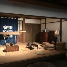 石畳茶屋は、金谷駅から歩けば金谷坂の石畳の入口部にある。飲食・お土産販売以外に、旧東海道金谷宿の往来時代の展示室があり、無料で見学できた。