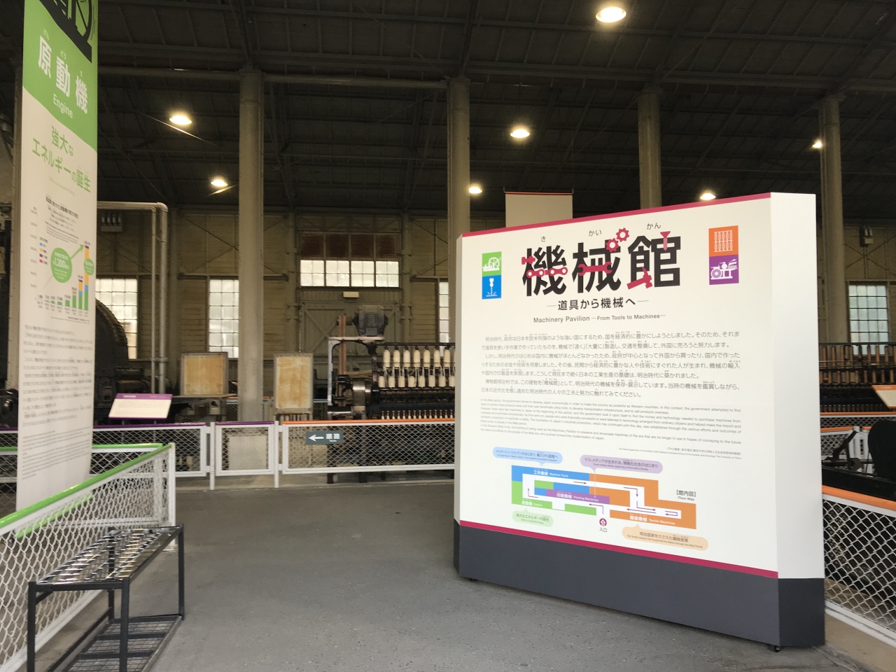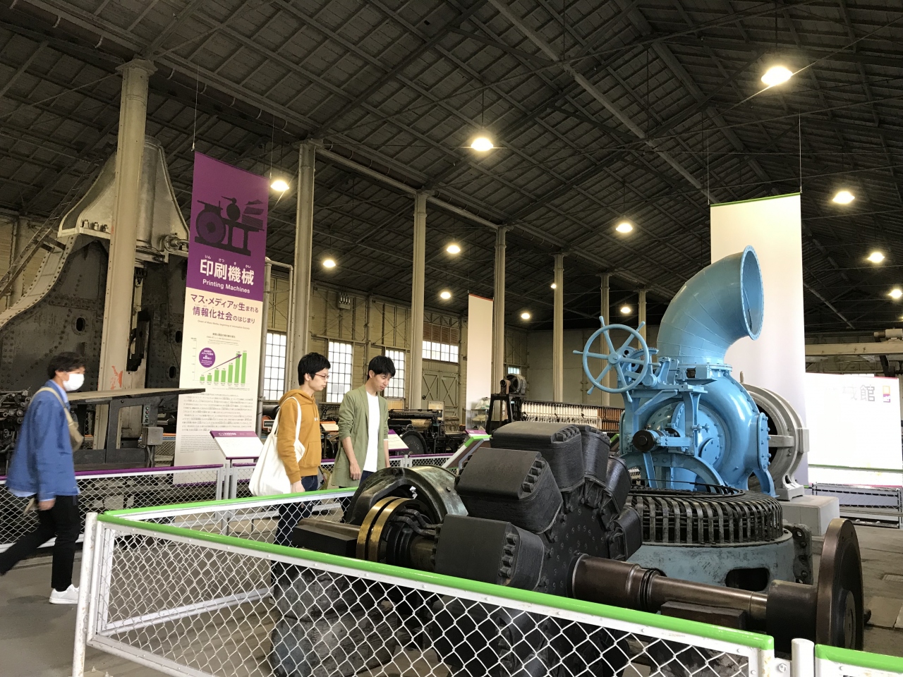 以前来た時よりも解説が増えたような気がする。気のせいかもしれないけど、解説が増えてわかりやすくなっていた気がする。明治に入って、それまで手作業で行っていたことが、機械の導入で早く大量に製造できるようになったこと、繊維産業、印刷機、工作機械、原動機など、区切って展示されているのがわかりやすい。意外と若い人達が熱心に見学してた。