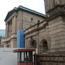 平日の昼に貨幣博物館行くと無料の日本銀号見学ツアーで内部を見学できるのですが、現在は耐震補強工事中で外からの見学しかできません(と言っても敷地内には入れます)。