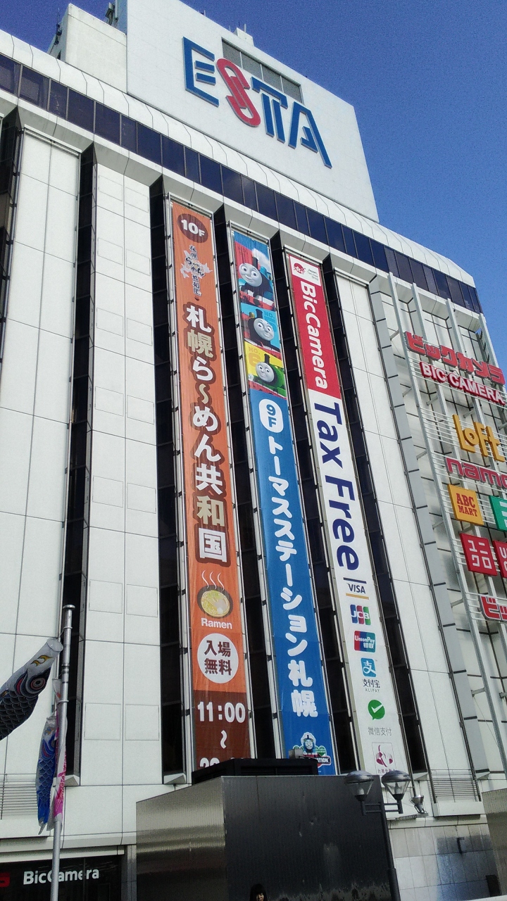 4月上旬に札幌に旅行に行きました。札幌駅の南口側すぐの場所にエスタはあります。大きいショッピング施設で、ビックカメラやラーメン共和国やレストラン街などが入っています。地下には食品売り場があって色々なお惣菜がありました。