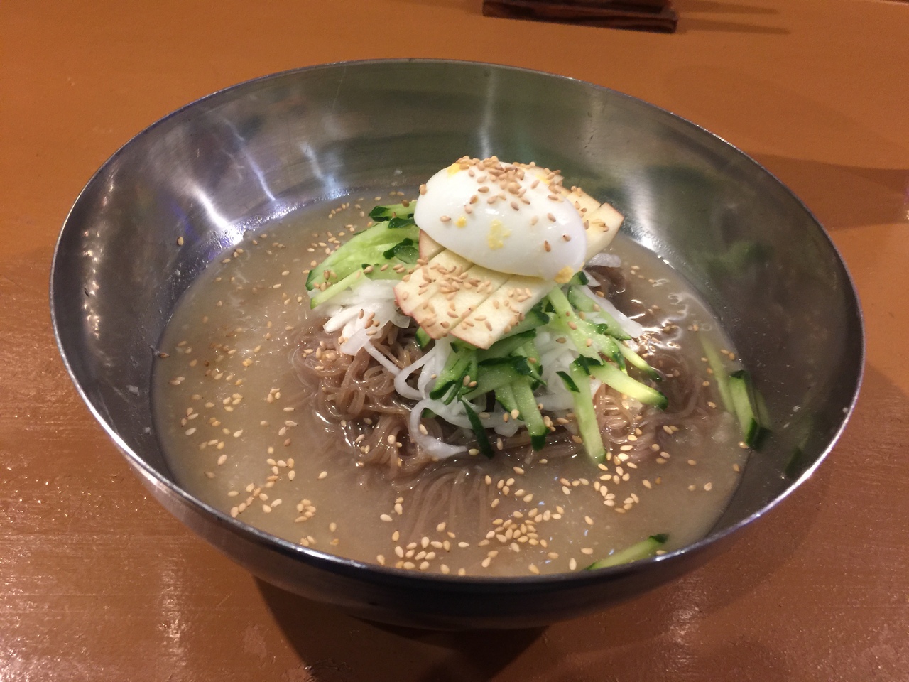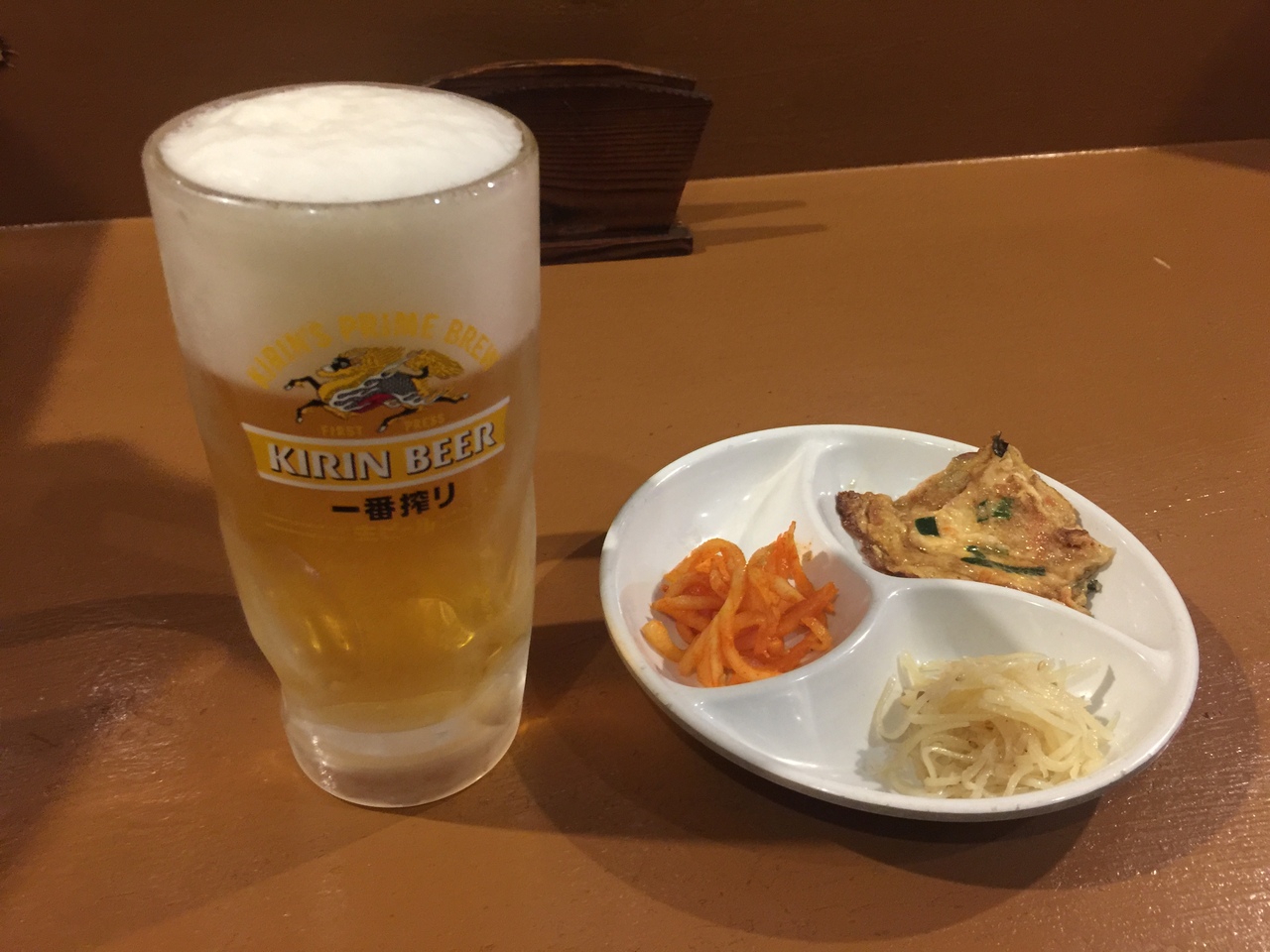 キムチチゲで生ビール!冷麺もたのみましたよ!そしてマッコリ!