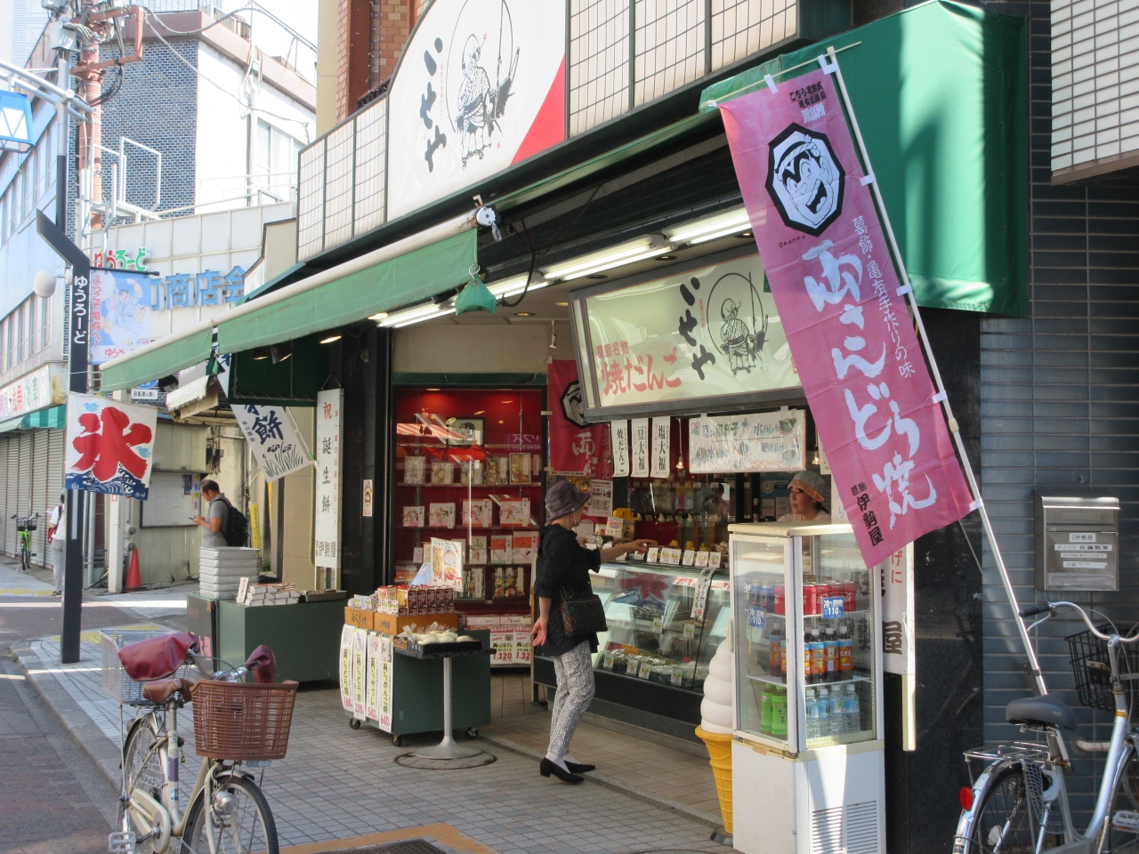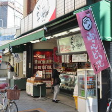 JR亀有駅南口から3分ほどのところにあるゆうろーど亀有商店街沿いに建つ、創業53年の老舗和菓子店です。手作りの味を大切にしていて、団子や大福などの甘味や、おこわや赤飯、おむすびなどを販売しています。亀有の土産物として、両さんの焼き印や押された両さんどら焼きや、両さんと麗子の印が押された両さんサブレ、メンコのような薄いクッキー・両さんめんこ焼なども製造、販売しています。亀有駅前に建つリリオ館でも販売していることから、亀有土産の一つだと思います。どら焼きを購入してみましたが、味は街で見かけるどら焼きとそれほど変わりませんでした。