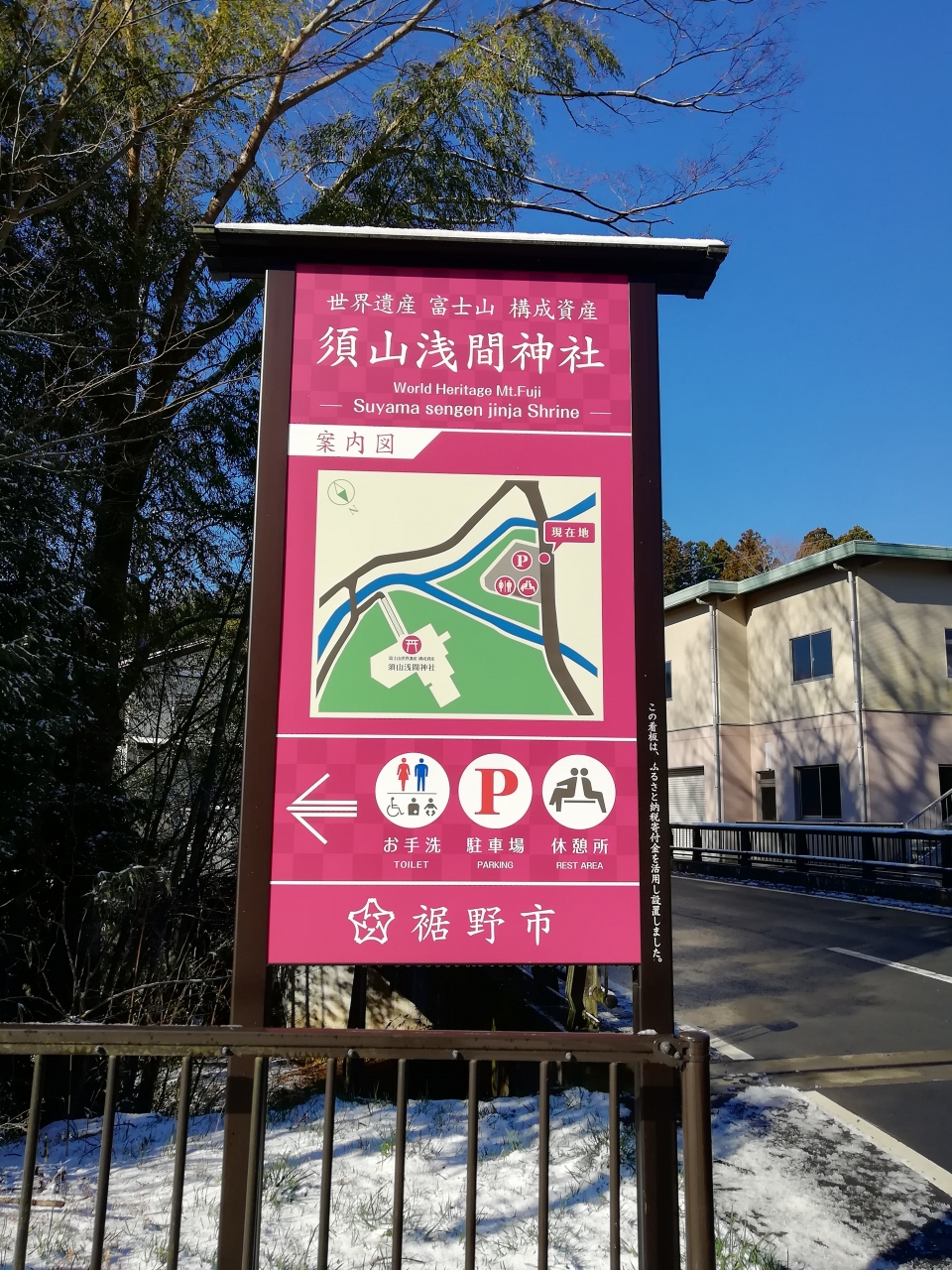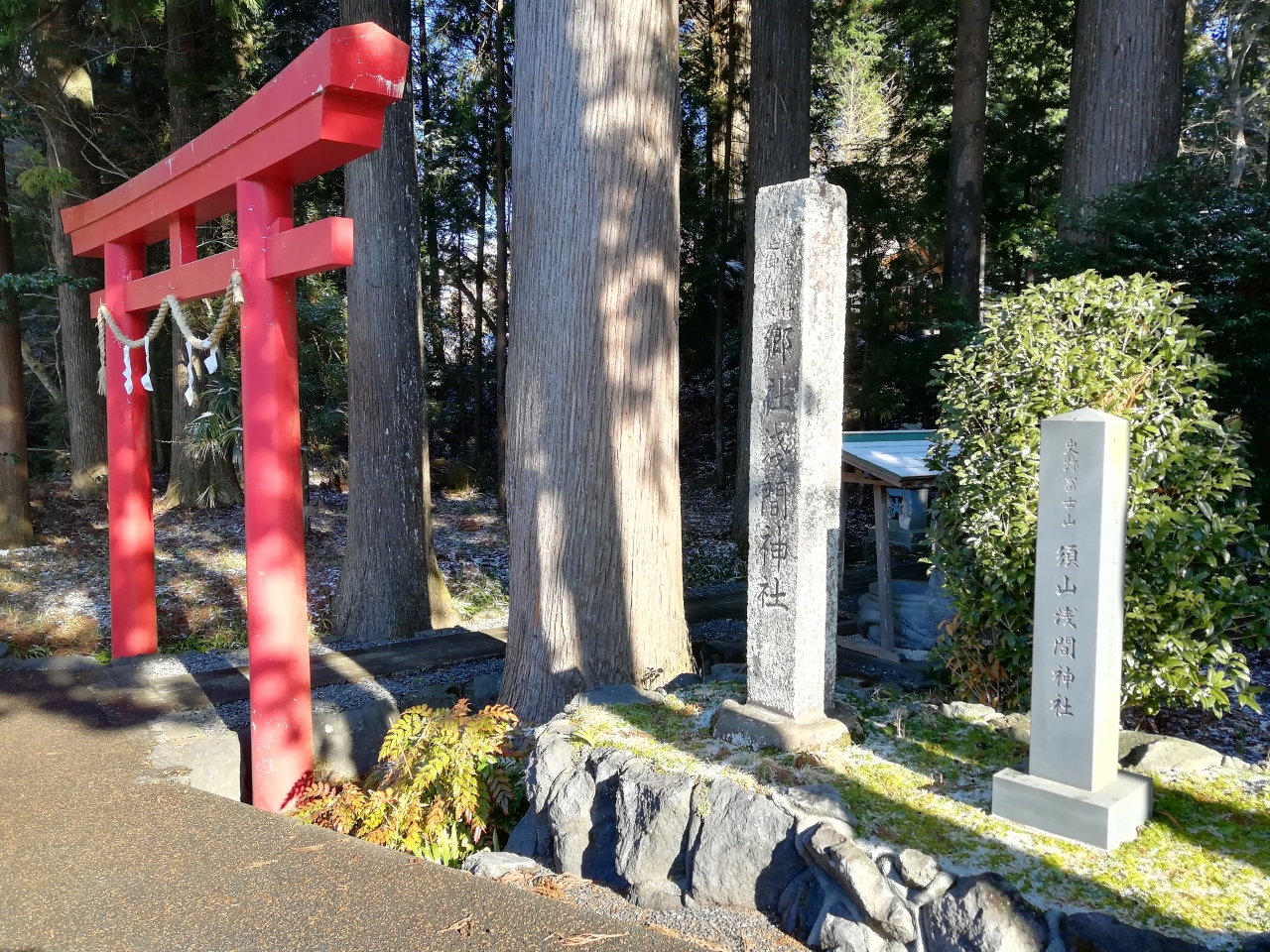 富士山の麓を走行。須山浅間神社の看板がありましたので立ち寄りして参拝しました。無料の駐車場あります。駐車場から歩いて2~3分で赤い鳥居があります。なかなか雰囲気の良い神社です。早朝のため人影もなくゆっくりと参拝をする事ができました。