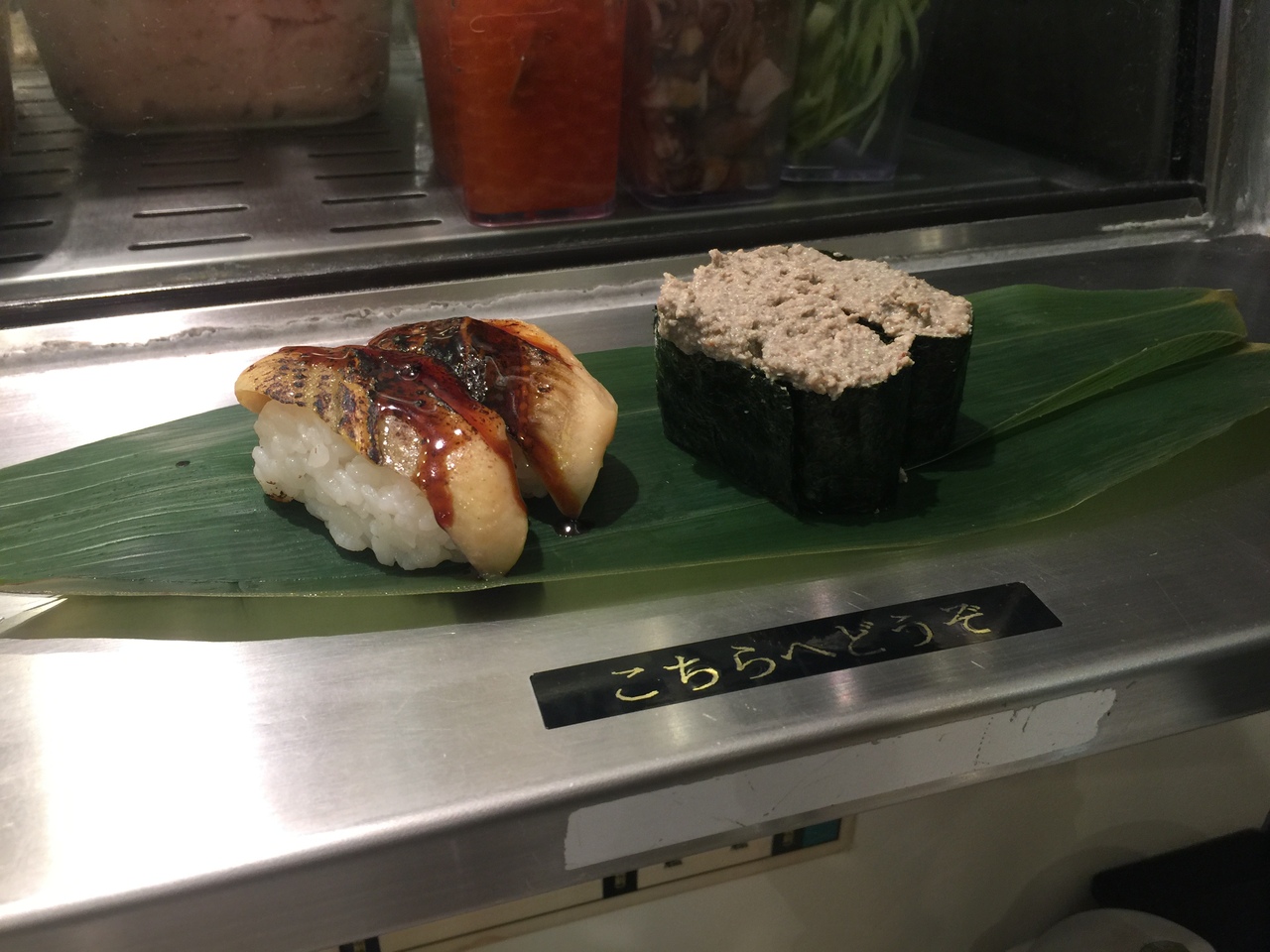 食べたのはビンチョウマグロ、サーモン、蟹味噌、穴子をそれぞれ2貫ずつ!良いですよ。
