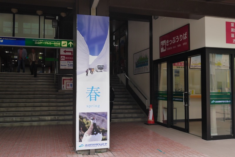 扇沢から立山へと抜けるアルペンルート。富山側のはしっこは立山駅となり、長野側からだとゴール、こちらからだとスタートになります。立山駅の駅を出たところすぐには湧き水があり、これから行く人も、帰ってきてさらに帰る人…どちらの喉もうるおしてくれることかと思います。5月半ばにいってきましたが、立山はもう初夏の気温で過ごしやすかったです。