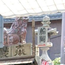 金刀比羅宮の参道を進むと、石段113段目に立派な一之坂鳥居があります。その脇に狛犬が鎮座しています。珍しく備前焼の狛犬です。参道には日除け(?)シートがかけられちょっと見ずらくなっていました。備前岡山の「長榮講」により天保15年に奉納されたそうです。