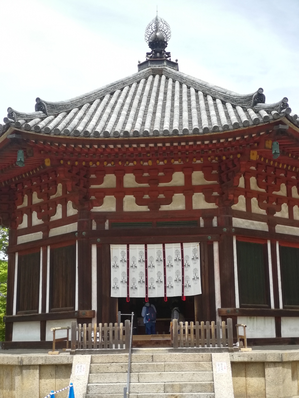 奈良観光で奈良公園界隈を回りました。GWでしたので、早朝7時すぎから駐車場は既に満車です。外国の方が多い。とても多い。バスが到着する度に人が増えていきます。奈良公園から興福寺へ。NHKで見てから是非行ってみたいと思っていました。一部で整備をしていましたが広い境内内に国宝が並ぶ様は壮観です。何度も大火にあっても復興してきたお寺の強さを感じました。興福寺北円堂は興福寺の中で一番古い建物です。拝観は有料です。