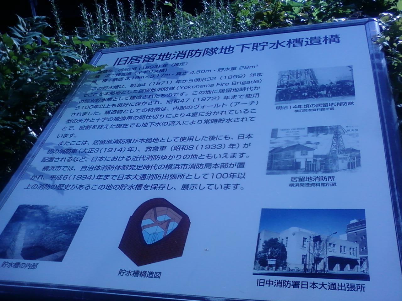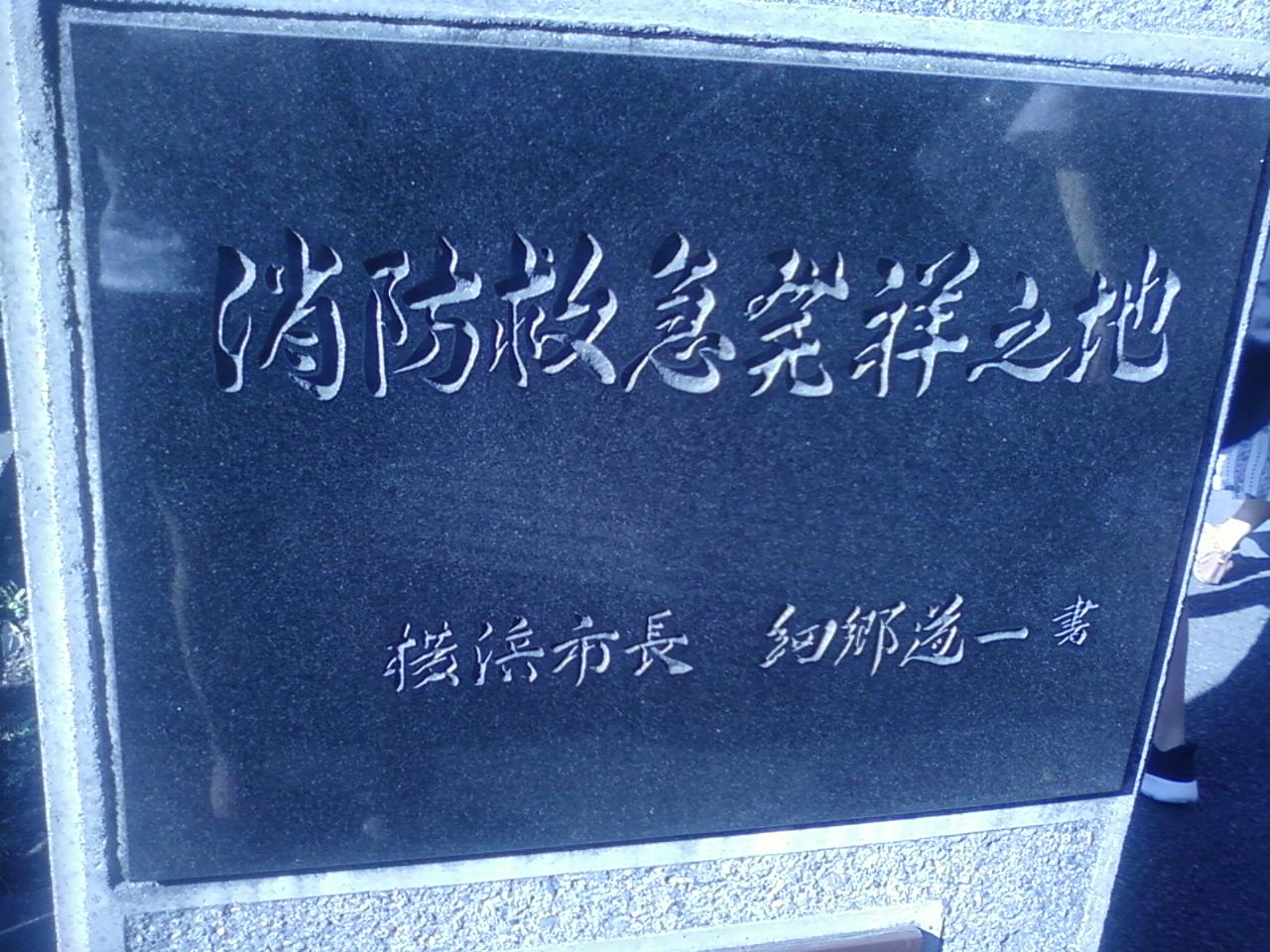 消防救急発祥の地は、横浜都市発展記念館のそばにあります。説明文の石碑と旧地下水槽遺構が残っています。ただ、あまり目立たないのと、下水槽遺構がガラス越しでよく見えないせいか、通り過ぎてしまう人が多いように思います。かつての横浜の日本人街の家屋はほとんどが木造で、火事で大きな被害が出たため、防火対策として、日本人街と外国人居留区の間に車道、歩道、植樹帯を設け、それがこのすぐ脇の日本大通りの元となったそうです。このあたりで鎮火のために地下水槽と消防救急がいかに重要だったかが伺い知れるモニュメントです。