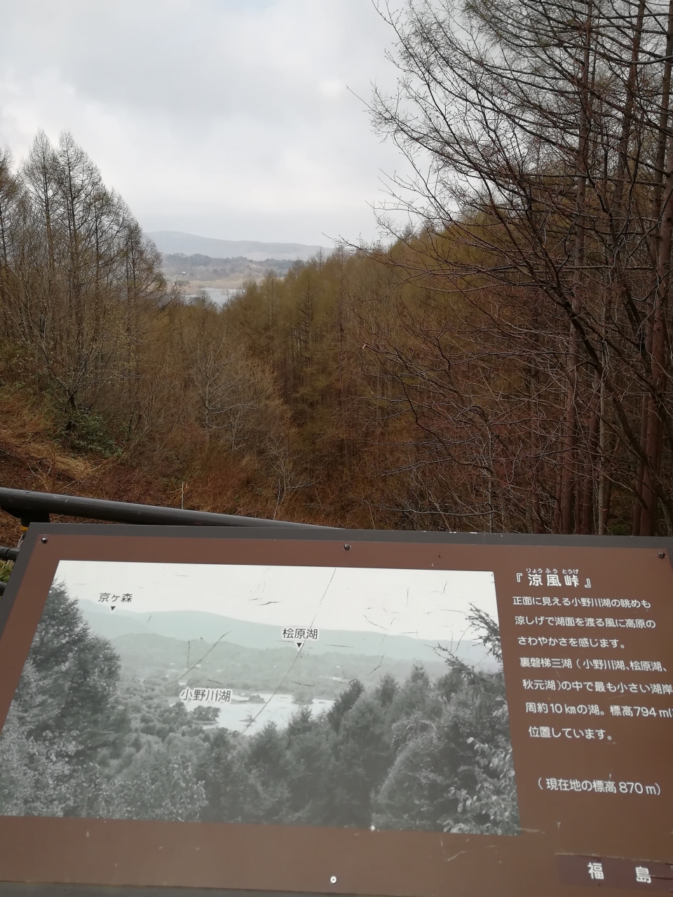 ゴールデンウィークの東北旅で福島の二本松から山側に入り岳温泉に行きました。岳温泉から道の駅つちゆつちゆロードパークを通って裏磐梯秋元湖から五色沼に抜ける道中にある涼風峠です。山道はなかなか楽しいワィンディングロードでした、ちょっとした展望台と駐車場があります。当日はちょっと曇り気味で少しくすんだ景色でしたが良い雰囲気でした。