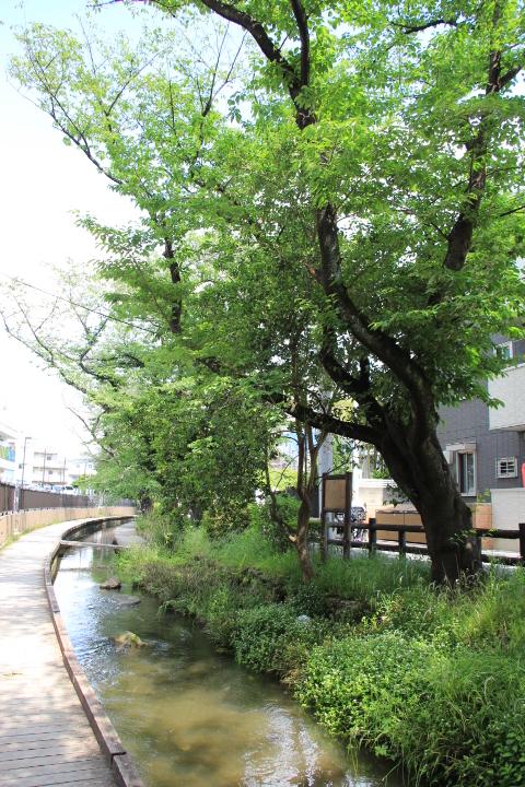 生田緑地ばら苑に行く際、宿河原駅近くの二ヶ領用水の散策路を歩きました。用水の上に