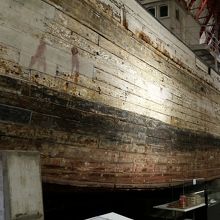 展示館建物は、船を覆うようなかたちになっています。木造の船ではありますが思ったより大型で驚きました。