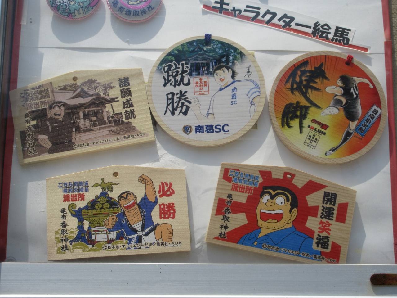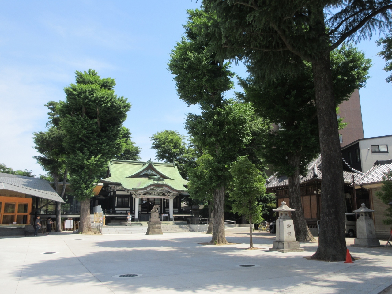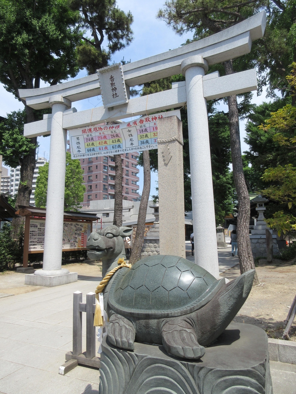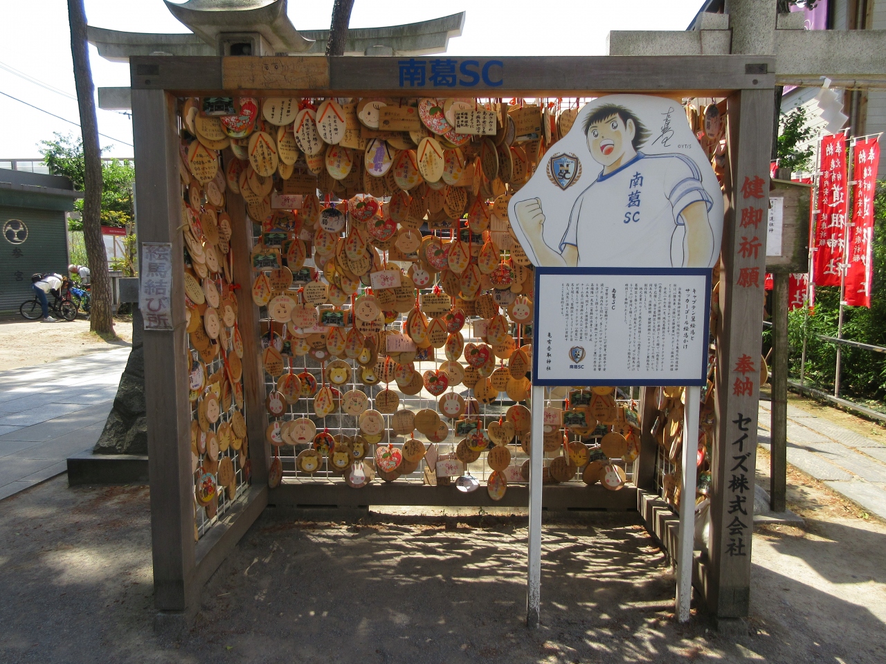 亀有駅から6分ほどのアリオ亀有の隣に建つ神社です。1276年に創建され、石造り鳥居の前に1対の亀の石像が神社を守っています。スポーツ技術向上や家内安全を祈願する人が多く訪れます。キャプテン翼やこち亀の絵馬がサッカーゴール絵馬かけに多くかけてありました。休日、境内奥の社殿に参拝する人が絶えませんでした。十数の神輿庫があることから氏子の町会が多いことがわかります。新しくすっきりしたデザインの社務所は目立ちますが、一番の特徴はケーキ店が境内にあることです。有名パティシエの店でメディアに取り上げられています。見どころが多い神社なので亀有を散策する際に訪れることをおすすめします。