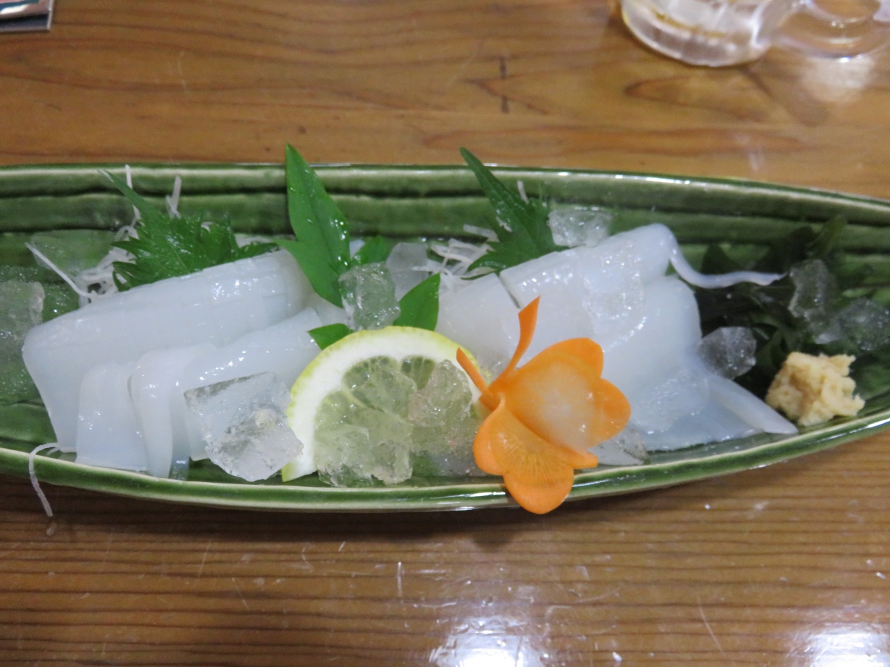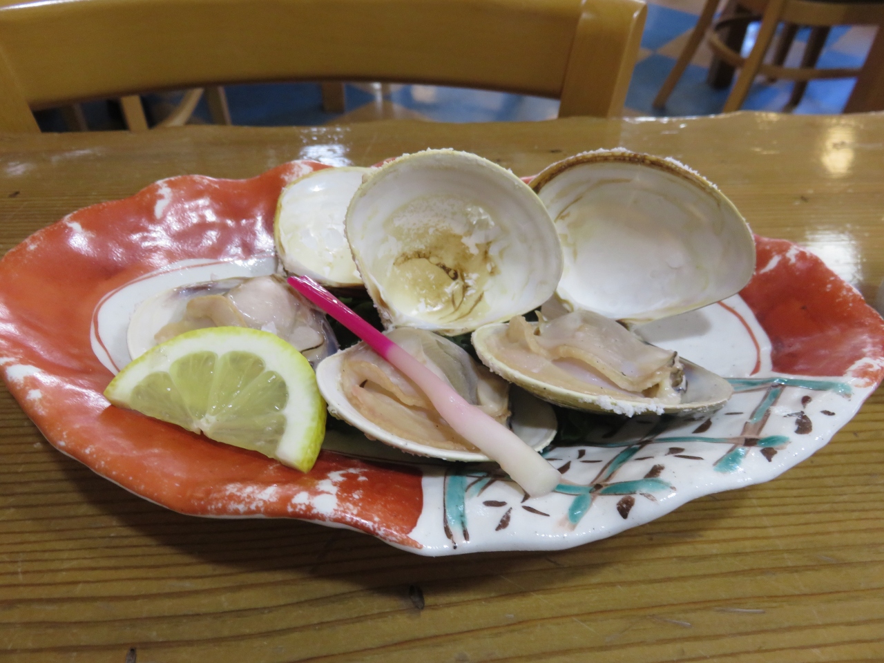 前回時季外れのカニで失敗したので、今回はシロイカとハマグリ。シロイカはケンサキのことで刺身はたっぷり二人分。時間かけていただきましたが美味しかったです。