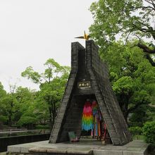 祈念像の両脇に一対の「折鶴の塔」が建っていました。